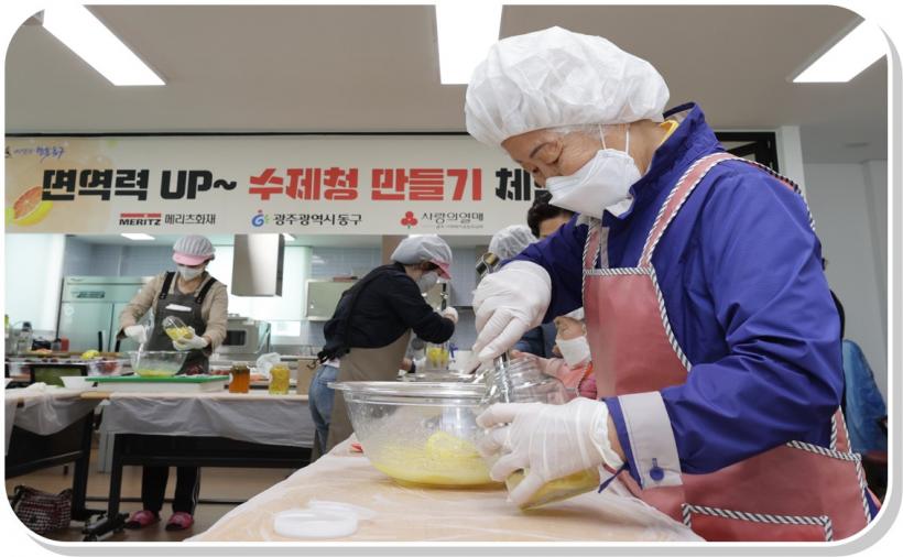 ¸Þ¸®Ã÷ÈÀç ÈÄ¿øÀ¸·Î ÁøÇàµÈ À̹ø Çà»ç´Â »ê¼ö1µ¿, Áö»ê1¡¤2µ¿, Çе¿, Çп, Áö¿ø1µ¿ ¸¶À»»ç¶ûä °øÀ¯ºÎ¾ý¿¡¼ µ¿º° 1ÀÎ °¡±¸ 6¸íÀÇ Âü¿©Èñ¸ÁÀÚ¸¦ ´ë»óÀ¸·Î ·¹¸ó°ú ¹éÇâ°ú¸¦ Àç·á·Î ¼öÁ¦Ã» ¸¸µé±â üÇèÀ» ÁøÇàÇß´Ù.