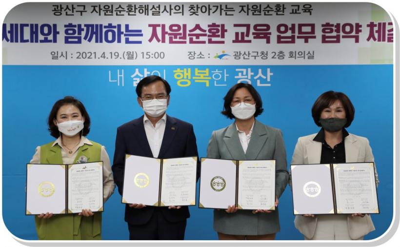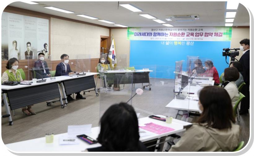±¤»ê±¸´Â 19ÀÏ ¿ÀÈÄ ±¸Ã» 2Ãþ »óȲ½Ç¿¡¼ ±¤ÁÖ¼ºÎ±³À°Áö¿øÃ»(±³À°Àå ¹ÚÁÖÁ¤), ±¤»ê±¸ ¾î¸°ÀÌÁý¿¬ÇÕȸ(ȸÀå È«±â¿µ), Çѱ¹À¯Ä¡¿øÃÑ¿¬ÇÕȸ ±¤»ê±¸ºÐȸ(ºÐȸÀå Á¤¼÷¿µ)¿Í ¡®¹Ì·¡¼¼´ë¿Í ÇÔ²²ÇÏ´Â ÀÚ¿ø¼øÈ¯ ±³À°¡¯ ¾÷¹«Çù¾àÀ» ü°áÇß´Ù.