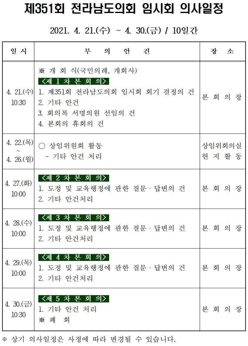 [°ø°£´º½º = ±è¼ö±Ù±âÀÚ] Àü¶ó³²µµÀÇȸ(ÀÇÀå ±èÇÑÁ¾)´Â ¿À´Â 21ÀϺÎÅÍ 30ÀϱîÁö 10Àϰ£ÀÇ ÀÏÁ¤À¸·Î Á¦351ȸ ÀÓ½Ãȸ¸¦ ¿î¿µÇÑ´Ù.
