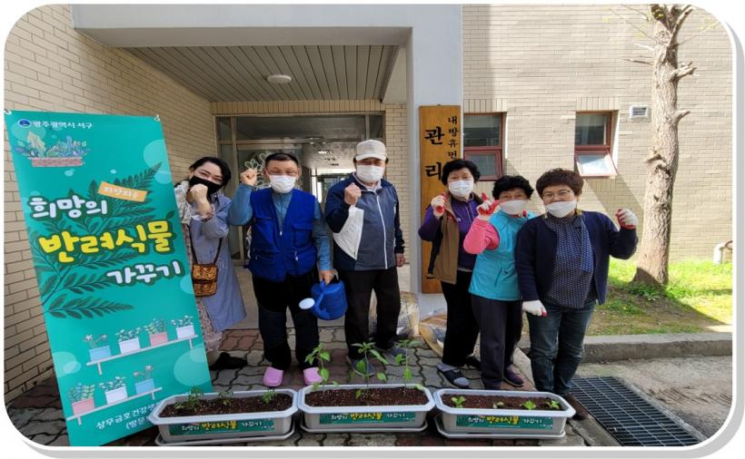 [°ø°£´º½º = ±è¼ö±Ù±âÀÚ] ±¤ÁÖ ¼±¸(±¸Ã»Àå ¼´ë¼®)°¡ ºñ´ë¸é °Ç°°ü¸®»ç¾÷ÀÇ ÀÏȯÀ¸·Î °ü³» °æ·Î´ç 35°³¼Ò¸¦ ´ë»óÀ¸·Î ÇÏ´Â Èú¸µ ¿ø¿¹ ÇÁ·Î±×·¥ÀÎ ¡®Èñ¸ÁÀÇ ¹Ý·Á½Ä¹° °¡²Ù±â, Èñ¸ÁÆ·¿ò¡¯À» ¿î¿µÇÑ´Ù.