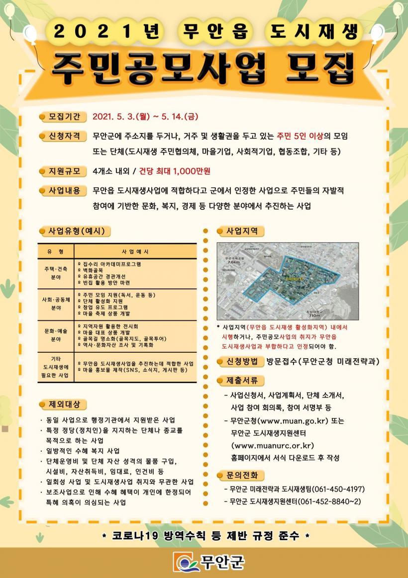 µµ½ÃÀç»ý Áֹΰø¸ð»ç¾÷Àº ¹«¾ÈÀ¾ ÀÏ´ëÀÇ °¢Á¾ ÀÎÇÁ¶ó È®Ãæ°ú Áֹοª·® °È¸¦ ÅëÇØ ¼èÅðÇÏ´Â ±¸µµ½É¿¡ Ȱ·ÂÀ» ºÒ¾î³Ö´Â ¹«¾ÈÀ¾ µµ½ÃÀç»ý ´ºµô»ç¾÷¿¡ ÀûÇÕÇÑ ÁֹΠÂü¿©»ç¾÷À» ÀǹÌÇÑ´Ù.