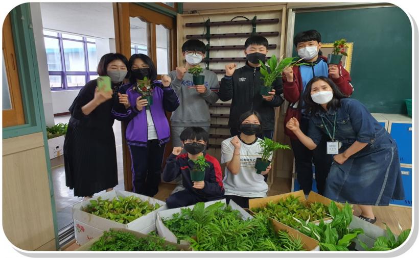 õ°îÁß Çª¸£¹Ìµ¿¾Æ¸® ¼Ò¼Ó ÇлýµéÀÌ ±×¸°½ºÄð Á¶¼º¿¡ Èû ½è´Ù. ±³½Ç¿¡ ¼³Ä¡µÈ ¼öÁ÷Ⱥп¡ Å×À̺í¾ßÀÚ¡¤½ºÅ²´ä½Ã½º µî 10¿© Á¾ÀÇ °ø±âÁ¤È½Ä¹°À» ÀڽŵéÀÌ µðÀÚÀÎÇÑ ¸ð¾çÀ¸·Î ½ÄÀçÇß´Ù. ±³¹«½Ç¿¡µµ ÆÄƼ¼Ç¿Â °¡µçÀ» ¼³Ä¡ÇØ °ø±â ÁúÀ» °³¼±Çß´Ù. °ø°£À» À籸¼ºÇØ ±³¹«½ÇÀ» ±³»çµéÀÇ Èú¸µ °ø°£À¸·Î ¸¸µé¾ú´Ù.