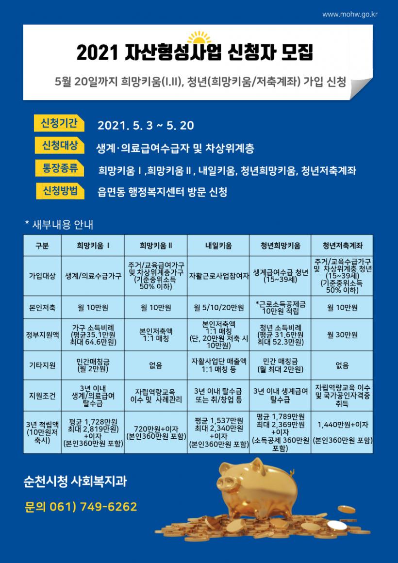 [°ø°£´º½º = ±è´ë¿µ±âÀÚ] ¼øÃµ½Ã(½ÃÀå Çã¼®)´Â ±âÃÊ»ýȰ¼ö±ÞÀÚ ¹× Â÷»óÀ§°èÃþ °¡±¸ÀÇ ÀÚ»êÇü¼º¡¤ÀÚ¸³À» Áö¿øÇϱâ À§ÇØ ¡®2021³â ÀÚ»êÇü¼ºÁö¿ø»ç¾÷¡¯ ´ë»óÀÚ¸¦ ¿À´Â 5¿ù 3ÀϺÎÅÍ 20ÀϱîÁö ¸ðÁýÇÑ´Ù.