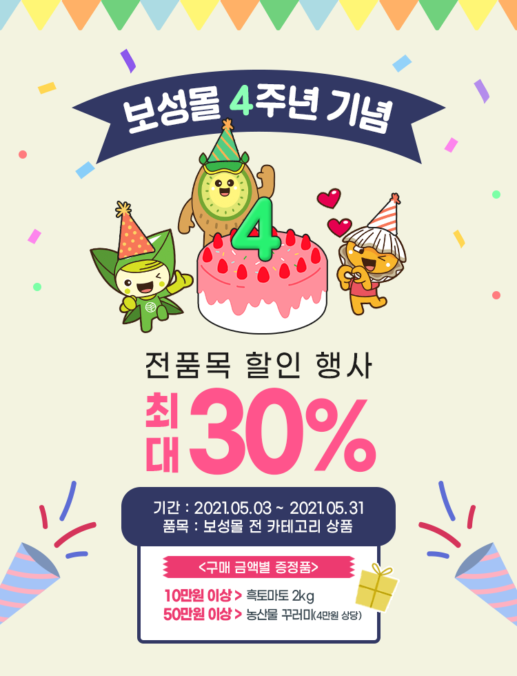 [°ø°£´º½º = ±è´ë¿µ±âÀÚ] º¸¼º±º ¿Â¶óÀÎ Á÷°Å·¡ÀåÅÍ ¡®º¸¼º¸ô¡¯ÀÌ ¿ÀÇ 4ÁÖ³âÀ» ¸Â¾Æ ¿À´Â 5¿ù 3ÀϺÎÅÍ ÃÖ´ë 30% Ưº° ÇÒÀÎ Çà»ç¸¦ ÁøÇàÇÑ´Ù°í ¹àÇû´Ù.