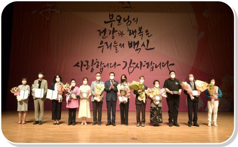 ƯÈ÷ Áßdz°ú ³ëȯÀ¸·Î ´©¿ö°è½Ã´Â °í·ÉÀÇ ºÎ¸ð´ÔÀ» ±ØÁøÇÑ È¿¼ºÀ¸·Î ºÀ¾çÇØ ±Í°¨ÀÌ µÈ ºÏ±¸ ±è¼ø¿Á(61,¿©)¾¾¿Í ±¤»ê±¸ È«¼º¾Ö(56,¿©)¾¾ µî È¿ÇàÀÚ 5¸í, ÀåÇѾî¹öÀÌ 4¸í, ³ëÀκ¹Áö±â¿©´Üü µî ¾î¹öÀ̳¯ °ü·Ã À¯°øÀÚ 15¸í¿¡ Á¤ºÎÆ÷»ó°ú ±¤ÁÖ½ÃÀå ǥâÀ» ½Ã»óÇß´Ù.