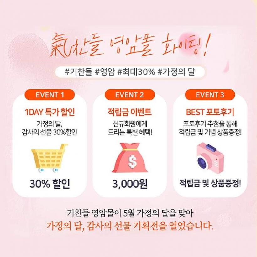 ±âÂùµé ¿µ¾Ï¸ô¿¡¼´Â Áö³ 5¿ù 3ÀϺÎÅÍ ³óÃà»ê¹°À» 20% ÇÒÀÎµÈ °¡°ÝÀ¸·Î ±¸¸ÅÇÒ ¼ö ÀÖÀ¸¸ç, ¿øµ¥ÀÌ Ãß°¡ Çà»ç·Î 5¿ù 10ÀÏ¿¡´Â ½Ò, 5¿ù 17ÀÏ¿¡´Â °í±¸¸¶¸¦ 30%ÇÒÀÎµÈ °¡°ÝÀ¸·Î ±¸¸ÅÇÒ ¼ö ÀÖ´Ù.