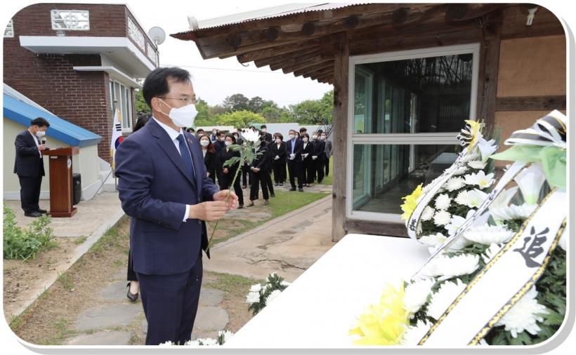 5‧18¹¦Áö Âü¹è ÈÄ ±è»ïÈ£ ûÀå µîÀº 5¡¤18¹ÎÁÖÇ×Àï ´ç½Ã ½Ã¹Î±º ´ëº¯ÀÎÀ¸·Î ÅõÀïÇÑ À±»ó¿ø ¿»ç »ý°¡¸¦ ¹æ¹®ÇØ Ã߸ð½ÄÀ» ¿¾ú´Ù. Ã߸ð»ç ³¶µ¶, ÇåÈ µî ¿»çÀÇ °í±ÍÇÑ Èñ»ý°ú Á¤½ÅÀ» Ã߸ðÇÏ´Â ½Ã°£À» °¡Á³´Ù.