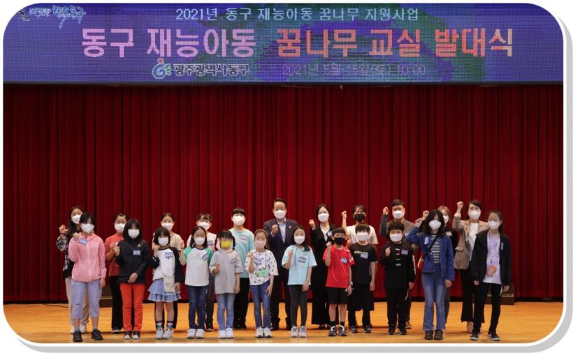 [°ø°£´º½º = ±è´ë¿µ±âÀÚ] ±¤ÁÖ µ¿±¸(±¸Ã»Àå ÀÓÅÃ)´Â Àç´ÉÀÖ´Â ¾Æµ¿µéÀÇ ²ÞÀ» ÀÀ¿øÇϰí Áö¿øÇϱâ À§ÇØ ¾Æµ¿¡¤Çкθð µî 40¿© ¸íÀÌ Âü¼®ÇÑ °¡¿îµ¥ ¡®2021³â µ¿±¸ Àç´É²Þ³ª¹«±³½Ç¡¯ ¹ß´ë½ÄÀ» °³ÃÖÇß´Ù°í ¹àÇû´Ù.