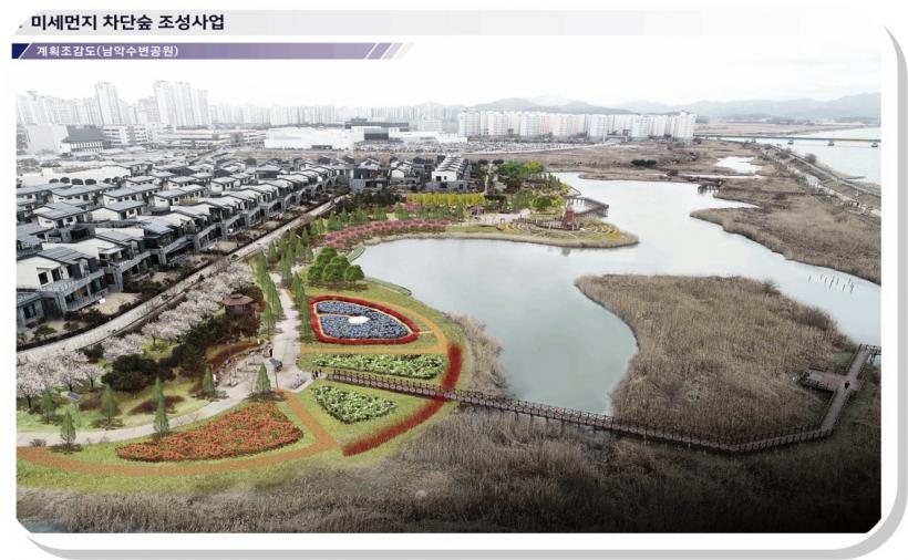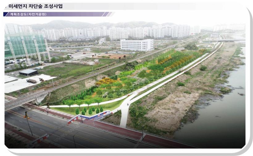 ±ºÀº ¹Ì¼¼¸ÕÁö¸¦ Àú°¨Çϰí Èú¸µ Àå¼Ò¸¦ Á¦°øÇÒ ¼ö ÀÖ´Â ³ì»ö ½£ Á¶¼ºÀ» À§ÇØ ÃÑ »ç¾÷ºñ 20¾ï ¿øÀ» ÅõÀÔÇØ ³²¾Ç ¼öº¯°ø¿ø°ú ÀÚÀü°Å°ø¿ø ÁÖº¯ ¾à 4haÀÇ ¸éÀû¿¡ ½£À» Á¶¼ºÇÒ °èȹÀÌ´Ù.