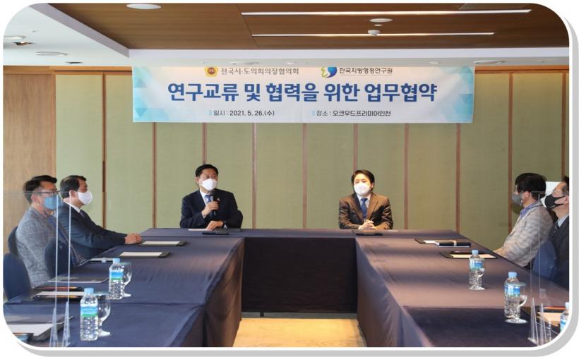 [°ø°£´º½º = ±è¼ö±Ù±âÀÚ] Àü±¹½ÃµµÀÇȸÀÇÀåÇùÀÇȸ(ȸÀå ±èÇÑÁ¾)°¡ Çѱ¹Áö¹æÇàÁ¤¿¬±¸¿ø°ú ¾÷¹«Çù¾àÀ» ü°áÇϰí, ÀÚÄ¡ºÐ±Ç°ú Áö¹æÀÇȸ ¿ª·®°È¸¦ À§ÇÑ Çù·Âü°è ±¸Ãà¿¡ ³ª¼¹´Ù.