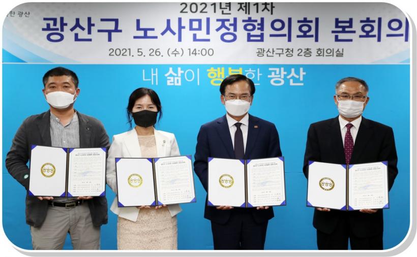 [°ø°£´º½º = ±è´ë¿µ±âÀÚ] ±¤ÁÖ ±¤»ê±¸ ³ë»ç¹ÎÁ¤ÀÌ Äڷγª19 À§±â±Øº¹ ¹× »ê¾÷ÀçÇØ Àç¹ß¹æÁö¸¦ À§ÇØ ÈûÀ» ¸ðÀ¸±â·Î Çß´Ù.
