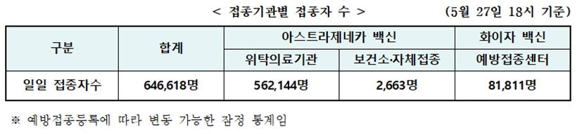 Àü±¹ÀÇ À§Å¹ÀÇ·á±â°ü(1¸¸3õ¿©°³¼Ò)¿¡¼ 65¼¼ ÀÌ»ó ¾î¸£½Å µî 56.2¸¸ ¸í, ¿¹¹æÁ¢Á¾¼¾ÅÍ(265°³¼Ò)¿¡¼ 75¼¼ ÀÌ»ó ¾î¸£½Å µî 8.2¸¸ ¸í µîÀÌ Äڷγª19 1Â÷ Á¢Á¾À» ÇÏ¿©, Áö³ 4¿ù 30ÀÏ ÀÏÀÏ Á¢Á¾ÀÚ¼ö ÃÖ´ëÄ¡(30.7¸¸ ¸í)¸¦ 2¹è ÀÌ»ó °æ½ÅÇÏ¿´´Ù.