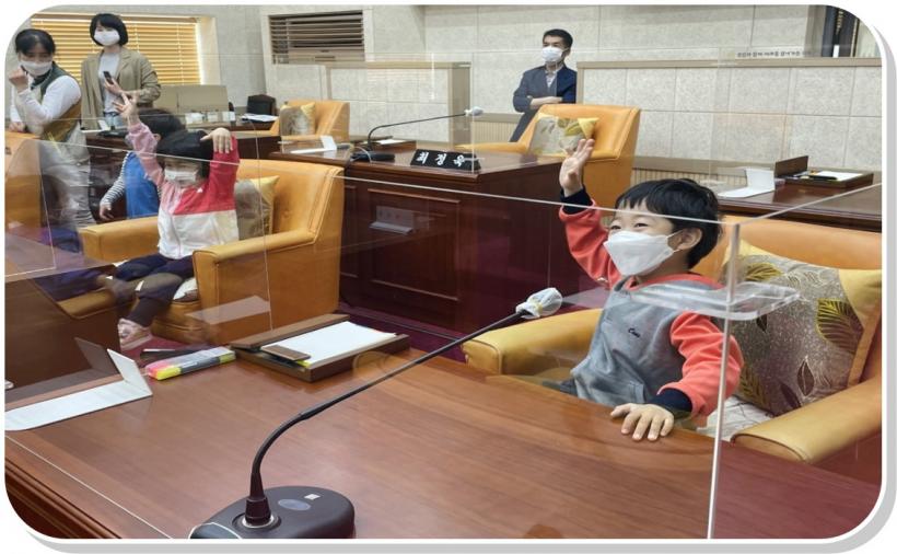 º»È¸ÀÇÀåÀ» ¹æ¹®ÇÑ ¾î¸°À̵éÀº ȸÀÇÀå¿¡ ¼³Ä¡µÈ °¢Á¾ ȸÀǽü³À» µ¹¾Æº¸°í ³î¶ó¿öÇßÀ¸¸ç ÀÇ¿ø Á¼®¿¡ ¾É°Å³ª ÀÇÀå¼®¿¡¼ ÀÇ»çºÀ 3Ÿ üÇèÀ» ÇÏ°í ½Å±âÇÑ Ç¥Á¤À» °¨ÃßÁö ¸øÇß´Ù.