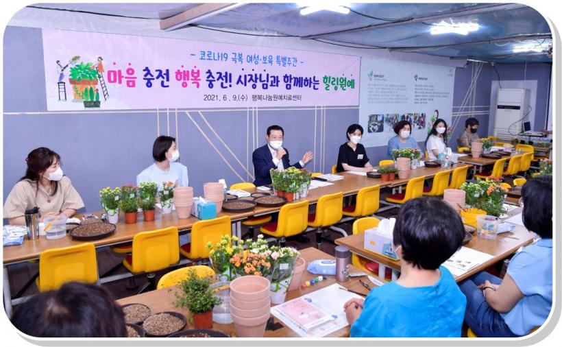 ÀÌ·¯ÇÑ ÇöÀåÀÇ ¾î·Á¿ò°ú ¹®Á¦¸¦ »ìÆìº¸±â À§ÇØ À̿뼷 ±¤ÁÖ½ÃÀåÀÌ À̳¯ Çູ³ª´®¿ø¿¹Ä¡·á¼¾Å͸¦ ã¾Æ Äڷγª19 »óȲ¿¡¼µµ Ãë¾÷À» ¸ñÇ¥·Î »õ·Î¿î µµÀü¿¡ ³ª¼´Â ¿©¼ºµéÀ» °Ý·ÁÇÏ°í °í¿ë ÇöÀå¿¡¼ °Þ´Â ¾Ö·Î»çÇ×À» ûÃëÇß´Ù. Äڷγª19 ±Øº¹À» À§ÇÑ ³× ¹øÂ° Ưº°ÁÖ°£ÀÎ ¡®¿©¼º¡¤º¸À° Ưº°ÁÖ°£¡¯ Ȱµ¿ÀÇ ÀÏȯÀÌ´Ù.