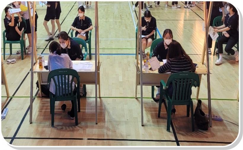 10ÀÏ »ì·¹½Ã¿À¿©°í¿¡ µû¸£¸é À̹ø ¹Ú¶÷ȸ´Â ¡®µÇ°í ½ÍÀº ³ª, µè°í ½ÍÀº ¼ö¾÷¡¯ÀÇ ±âÄ¡ ¾Æ·¡ Çлýµé¿¡°Ô ¼±ÅÃÇü ±³À°°úÁ¤ ¹× ±³°ú¸ñ ¼±Åÿ¡ ´ëÇÑ Á¤º¸ Á¦°ø ¸ñÀûÀ¸·Î °³ÃֵƴÙ. Äڷγª19 È®»ê ¹æÁö ¹× ¿¹¹æÀ» À§ÇØ ¸¶½ºÅ© Âø¿ë, °Å¸®µÎ±â µî ¿¹¹æ¼öÄ¢À» öÀúÈ÷ ÁؼöÇϸç ÁøÇàÇß´Ù.