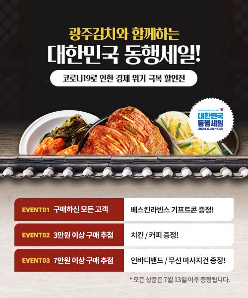 Çà»ç±â°£¿¡ ¼îÇθô¿¡¼ ±èÄ¡¸¦ ±¸¸ÅÇÑ ¼ÒºñÀÚ´Â ±¸¸Å ±Ý¾×°ú °ü°è¾øÀÌ ±âÇÁƼÄÜÀ» ÁõÁ¤Çϸç, ¹«·á¹è¼Û ÇýÅõµ Á¦°øÇÑ´Ù. ¶Ç Çà»ç°¡ ³¡³ ÈÄ¿¡´Â ±â°£ Áß ±¸¸Å¾×À» ÇÕ»êÇØ ±¸¸Å±Ý¾×¿¡ µû¶ó Ãß÷À» ÅëÇØ 333¸í¿¡°Ô ´Ù¾çÇÑ »çÀºÇ°À» Á¦°øÇÑ´Ù.