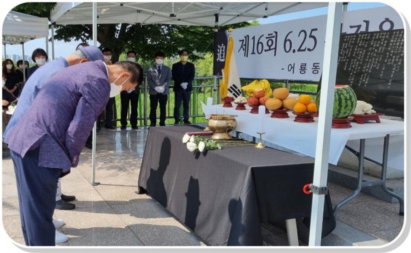 [°ø°£´º½º = ±è´ë¿µ±âÀÚ] ±¤ÁÖ ±¤»ê±¸ ¾î·æµ¿ ¹ßÀüÇùÀÇȸ(ȸÀå ±èöÁØ)°¡ 25ÀÏ ¼±¾Ïµ¿ Áߺ¸±³ ÀÔ±¸ ÃæÈ¥ºñ ¾Õ¿¡¼ Á¦16ȸ 6.25 ÂüÀü¿ë»ç ÃæÈ¥Á¦¸¦ Áö³Â´Ù.