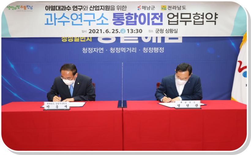 ¸íÇö°ü ÇØ³²±º¼ö¿Í ¹ÚÈ«Àç Àü¶ó³²µµ ³ó¾÷±â¼ú¿øÀå µîÀÌ Âü¼®ÇÑ °¡¿îµ¥ ¿¸° Çù¾à½Ä¿¡¼´Â Àü³²µµ °ú¼ö¿¬±¸¼ÒÀÇ ÇØ³² ÅëÇÕ ÀÌÀüÀÌ ¼º°øÀûÀ¸·Î ÃßÁøµÉ ¼ö ÀÖµµ·Ï ±ä¹ÐÈ÷ Çù·ÂÇØ ³ª°¡±â·Î Çß´Ù.