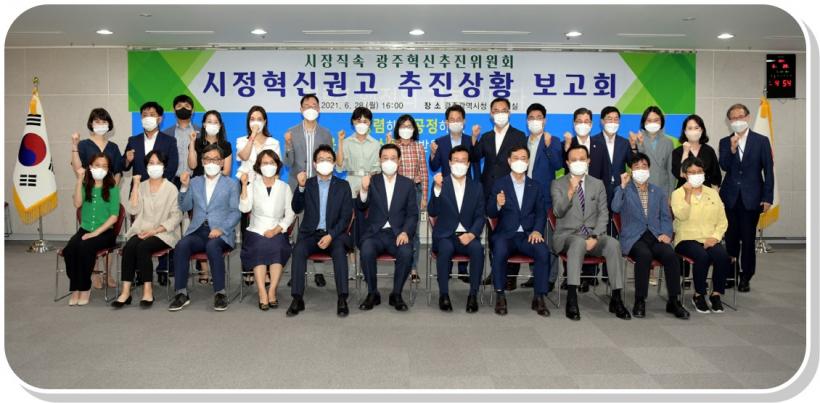 [°ø°£´º½º = ±è¼ö±Ù±âÀÚ] ±¤ÁÖ±¤¿ª½ÃÀå Á÷¼Ó ±¤ÁÖÇõ½ÅÃßÁøÀ§¿øÈ¸´Â 28ÀÏ ¿ÀÈÄ ½Ãû ÁßȸÀǽǿ¡¼ À̿뼷 ½ÃÀå ÁÖÀç·Î Çõ½ÅÃßÁøÀ§ À§¿ø, °ü°è °ø¹«¿øÀÌ Âü¼®ÇÑ °¡¿îµ¥ ¡®½ÃÁ¤Çõ½Å ±Ç°í ÃßÁø»óȲ¡¯À» Á¡°ËÇϰí ÇâÈÄ ±¤ÁÖÇõ½ÅÀÇ ¹æÇâÀ» ³íÀÇÇß´Ù.