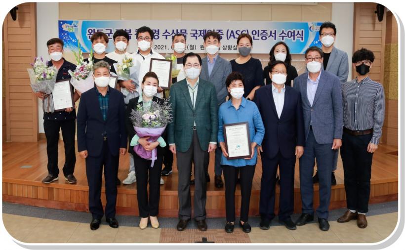 [°ø°£´º½º = ±è¼ö±Ù±âÀÚ] ¿Ïµµ±º(±º¼ö ½Å¿ìö)ÀÌ Áö³ 28ÀÏ ¿Ïµµ±ºÃ» ´ëȸÀǽǿ¡¼ Ã»ÇØÁø¹Ù´Ù¿µ¾îÁ¶ÇÕ¹ýÀÎ µî¿¡ ģȯ°æ ¼ö»ê¹° ±¹Á¦ ÀÎÁõÀÎ ASC(Aquaculture Stewardship Council) ÀÎÁõ¼ ¼ö¿©½ÄÀ» °³ÃÖÇß´Ù.
