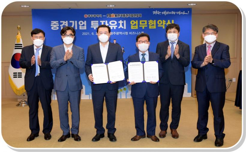 [°ø°£´º½º = ±è¼ö±Ù±âÀÚ] ±¤ÁÖ±¤¿ª½Ã´Â 29ÀÏ ½Ãû ºñÁî´Ï½º·ë¿¡¼ Çѱ¹Áß°ß±â¾÷¿¬ÇÕȸ¿Í Áß°ß±â¾÷ ÅõÀÚÀ¯Ä¡ Ȱ¼ºÈ¸¦ À§ÇÑ ¾÷¹«Çù¾àÀ» ü°áÇß´Ù.