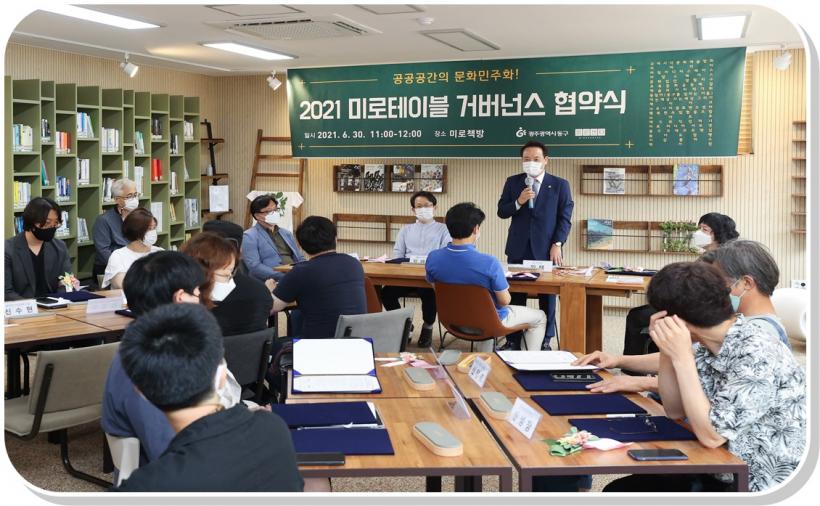 [°ø°£´º½º = ±è´ë¿µ±âÀÚ] ±¤ÁÖ µ¿±¸(±¸Ã»Àå ÀÓÅÃ)´Â 19°³ Çù·Â´Üü‧³×Æ®¿öÅ©(ÃÑĪ ¹Ì·ÎÅ×À̺í)¿Í °ø°ø °ø°£ÀÇ ¹®È¹ÎÁÖȸ¦ ÅëÇÑ ÁÖüÀûÀ̰í ÀÚ¹ßÀûÀÎ Áö¿ª¹®È »ýÅÂ°è ±¸Ãà°ú ¿¹¼ú±â¹Ý ÀÎÇÁ¶ó È®ÀåÀ» À§ÇÑ ¹Î¡¤°ü °Å¹ö³Í½º ¾÷¹«Çù¾àÀ» ü°áÇß´Ù°í ¹àÇû´Ù.