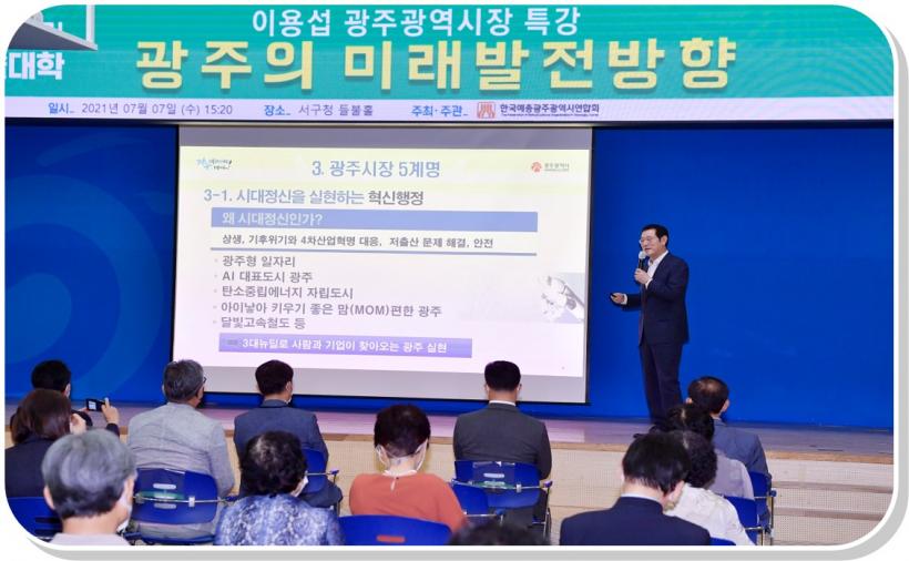À̿뼷 ±¤ÁÖ±¤¿ª½ÃÀåÀÌ 7ÀÏ ¼±¸Ã» µéºÒȦ¿¡¼ ¿¸° Á¦29±â ±¤ÁÖ¿¹ÃÑ ½Ã¹Î¿¹¼ú´ëÇп¡¼ ¡®±¤ÁÖÀÇ ¹Ì·¡ÀÇ ¹ßÀü¹æÇ⡯À̶ó´Â ÁÖÁ¦·Î Ưº°°¿¬À» Çß´Ù.