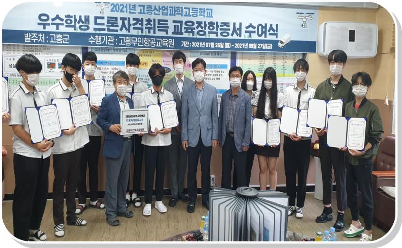 [°ø°£´º½º = ±è¼ö±Ù±âÀÚ] °íÈï»ê¾÷°úÇаí(±³Àå ÃÖÁ¾·Ä)´Â Áö³ 7¿ù 14ÀÏ °íÈﱺÀÇ ±³À°¹ßÀüÁö¿ø±Ý ±âÁ¸ 1,500¸¸¿ø°ú ¼öÇà±â°üÀÎ °íÈ﹫ÀÎÇ×°ø±³À°¿ø¿¡¼ µå·Ð±¹°¡ÀÚ°ÝÁõ Ãëµæ°úÁ¤ ±³À°ÀåÇÐ±Ý 1,800¸¸¿øÀÇ ¿¹»êÁö¿øÀ¸·Î 2021Çг⵵ ¿©¸§¹æÇÐÁß¿¡ °íÇö¸í µî 11¸íÀÇ ÀçÇлýµé¿¡°Ô µå·Ð±¹°¡ÀÚ°ÝÁõ Ãëµæ ÇÁ·Î±×·¥À» ¿î¿µÇÑ´Ù°í ¹àÇû´Ù.