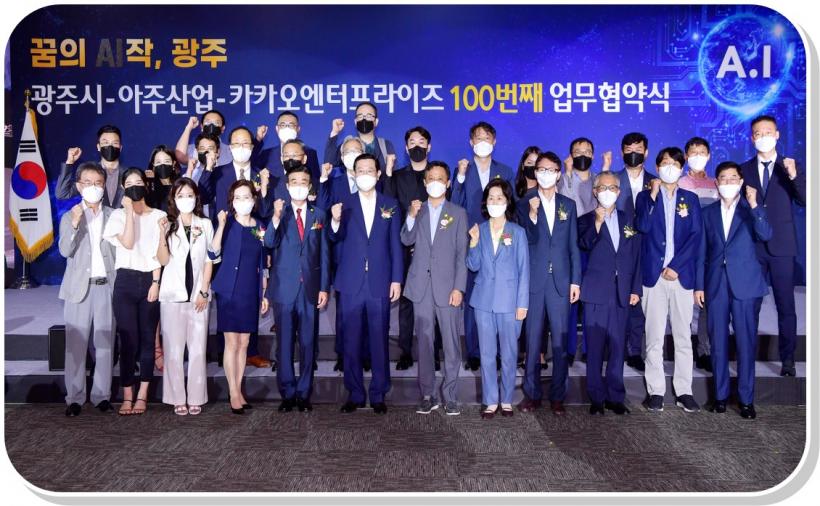 [°ø°£´º½º = ±è¼ö±Ù±âÀÚ] ±¤ÁÖ±¤¿ª½Ã°¡ Àü±¹ À¯¸Á AI±â¾÷ÀÎ ¾ÆÁÖ»ê¾÷, īī¿À¿£ÅÍÇÁ¶óÀÌÁî¿Í ±¤ÁÖÇü ÀΰøÁö´É ºñÁî´Ï½º 100¹øÂ° ¾÷¹«Çù¾àÀ» ü°áÇÏ¸é¼ ¸í½Ç°øÀÌ ÀΰøÁö´É 4´ë°±¹ ´ëÇѹα¹À» °ßÀÎÇϰí ÀÖ´Ù.