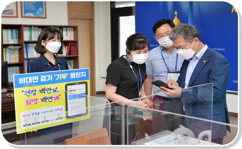 [°ø°£´º½º = ±è¼ö±Ù±âÀÚ] ±¤ÁÖ ¼±¸(±¸Ã»Àå ¼´ë¼®)°¡ ÀÏ»ó ¼Ó °È±â ½ÇõÀ» ÅëÇØ ÁֹΠ°Ç°À» ÁõÁøÇϰí, ¼Ò¿ÜµÈ ÀÌ¿ôµé¿¡°Ô Èñ¸ÁÀ» Àü´ÞÇϱâ À§ÇØ ºñ´ë¸é °È±â ±âºÎ 縰Áö¡¸°Ç° ¹é¸¸º¸ Èñ¸Á ¹é¸¸¹è¡¹¸¦ ¿î¿µÇÑ´Ù.