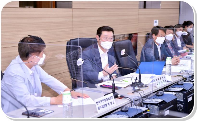 ÀÌ ÀÚ¸®¿¡¼ ±¤ÁÖ½Ã¿Í Çùȸ´Â ±¤ÁÖ ÁÖÅýÃÀå ¾ÈÁ¤°ú ºÎµ¿»ê °Å·¡ ¿øÈ°È¸¦ À§ÇØ ¡®ºÎµ¿»ê ¹Î°ü ÇùÀÇü¡¯¸¦ Á¤·ÊÀû(ºÐ±â 1ȸ °³ÃÖ)À¸·Î °³ÃÖÇϸç Á¤º¸±³È¯ µîÀ» ÅëÇØ ÈûÀ» ¸ðÀ¸±â·Î Çß´Ù.