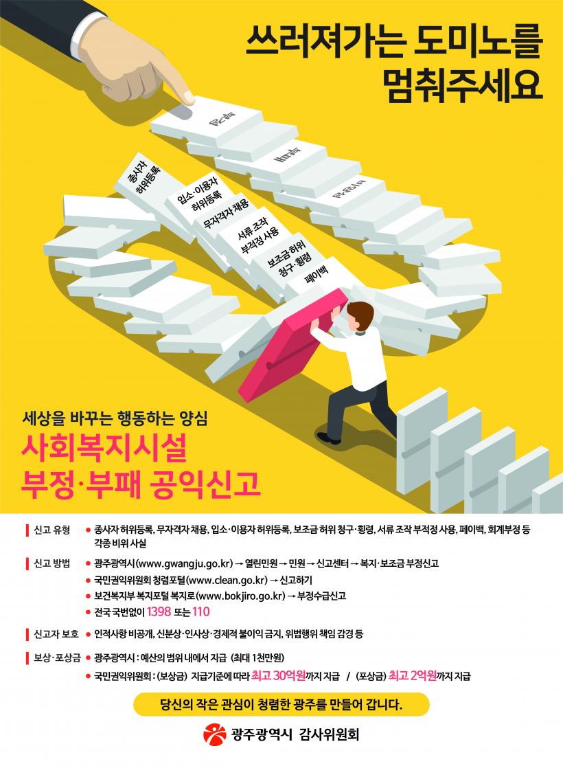 [°ø°£´º½º = ±è¼ö±Ù±âÀÚ] ±¤ÁÖ±¤¿ª½Ã´Â »çȸº¹Áö½Ã¼³ÀÇ Åõ¸í¼º Á¦°í ¹× û·Å¹®È È®»êÀ» À§ÇØ °øÀͽŰíÁ¦µµ È«º¸¸¦ °ÈÇϱâ·Î ÇÏ°í ¿À´Â 26ÀϺÎÅÍ Áö¿ª »çȸº¹Áö½Ã¼³ 2173°÷¿¡ È«º¸ Æ÷½ºÅÍ 4000ºÎ¸¦ Á¦ÀÛ¡¤¹èÆ÷ÇÑ´Ù.