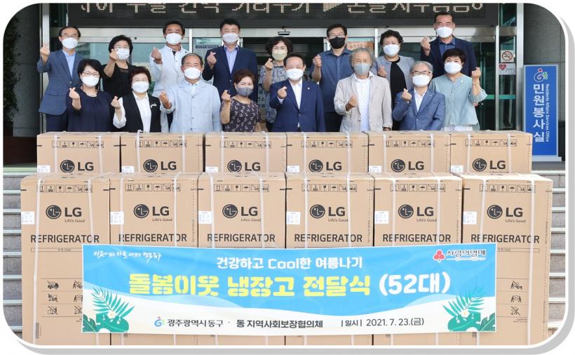 [°ø°£´º½º = ±è´ë¿µ±âÀÚ] ±¤ÁÖ µ¿±¸(±¸Ã»Àå ÀÓÅÃ)´Â Äڷγª19¿Í ¹«´õÀ§·Î ¾î·Á¿òÀ» °Þ°í ÀÖ´Â °ü³» Àú¼ÒµæÃþÀ» ´ë»óÀ¸·Î °Ç°ÇÏ°í ½Ã¿øÇÑ ¿©¸§³ª±â¸¦ À§ÇÑ ³ÃÀå°í Áö¿ø»ç¾÷À» ÃßÁøÇÑ´Ù°í ¹àÇû´Ù.