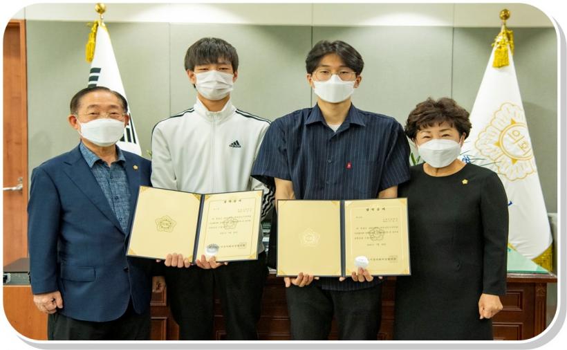 [°ø°£´º½º = ±è¼ö±Ù±âÀÚ] °íÈﱺÀÇȸ(ÀÇÀå ¼Û¿µÇö)´Â Áö³ 6¿ù 9ÀÏ °íÈï±³À°Áö¿øÃ»ÀÇ ÃßõÀ» ¹Þ¾Æ ¼±¹ßµÈ °ü³» °íµîÇб³ 3Çгâ ÀÌ»óÀÍ Çлý°ú ³ìµ¿°íµîÇб³ 2Çгâ õ½ÂÂù Çлý 2¸í¿¡°Ô Áö³ 23ÀÏ ÀåÇбÝÀ» Àü´ÞÇÏ¿´´Ù.