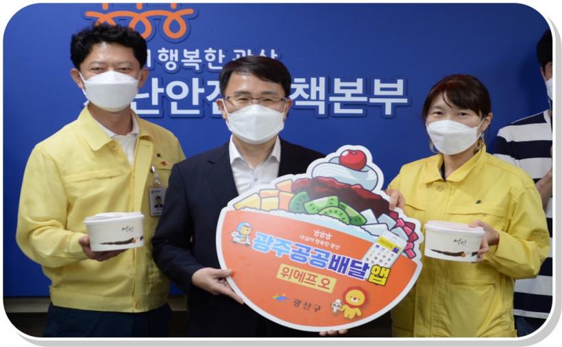 [°ø°£´º½º = ±è´ë¿µ±âÀÚ] ±¤ÁÖ ±¤»ê±¸(±¸Ã»Àå ±è»ïÈ£)°¡ ±¤ÁÖ°ø°ø¹è´Þ¾Û(À§¸ÞÇÁ¿À)À¸·Î °£½ÄÀ» ÁÖ¹®ÇØ Æø¿° µî Àç³ ´ëÀÀ ¾÷¹«·Î ¾Ö¾²°í ÀÖ´Â Á÷¿øµéÀ» °Ý·ÁÇß´Ù.