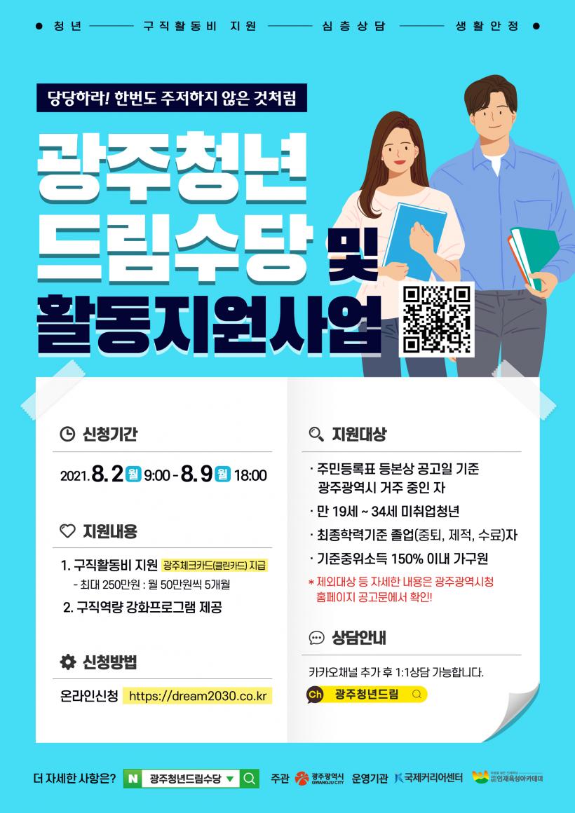 [°ø°£´º½º = ±è¼ö±Ù±âÀÚ] ±¤ÁÖ±¤¿ª½Ã´Â ¹ÌÃë¾÷ û³âÀÇ »çȸÁøÀÔÀ» µ½°í ±¸Á÷Ȱµ¿¿¡ ÇÊ¿äÇÑ °æºñ¸¦ Áö¿øÇϱâ À§ÇØ ¡®2021 û³âµå¸²¼ö´ç ¹× Ȱµ¿Áö¿ø »ç¾÷¡¯ 2±â Âü¿©ÀÚ 560¸íÀ» 8¿ù2ÀϺÎÅÍ 9ÀϱîÁö ¸ðÁýÇÑ´Ù.