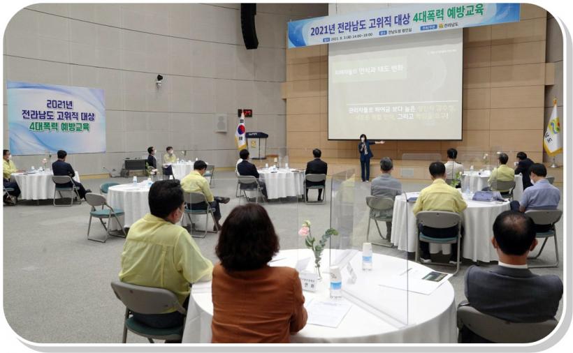 [°ø°£´º½º = ±è¼ö±Ù±âÀÚ] Àü¶ó³²µµ´Â Á÷Àå ³» 4´ë Æø·ÂÀ» ¿¹¹æÇÏ°í °ÇÀüÇÑ °øÁ÷¹®È¸¦ Á¶¼ºÇϱâ À§ÇØ 3ÀÏ À¯Á¤Èç Á¨´õ½ÊÇâ»ó±³À°¿øÀåÀ» ÃÊû, ½Ç±¹Àå ÀÌ»ó °íÀ§Á÷À» ´ë»óÀ¸·Î ¡®Á÷Àå ³» ¼ºÈñ·Õ¿¡ ´ëÇÑ ÀÌÇØ¡¯, ¡®°ü¸®ÀÚÀÇ ¼ºÀÎÁö °¨¼ö¼º¡¯ µîÀ» ÁÖÁ¦·Î ±³À°À» Çß´Ù.