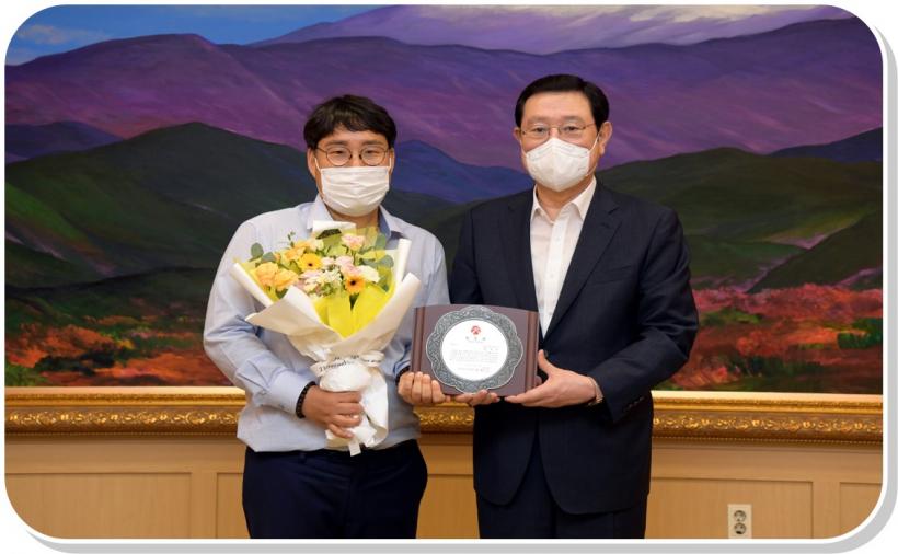 [°ø°£´º½º = ±è¼ö±Ù±âÀÚ] ±¤ÁÖ±¤¿ª½Ã´Â 10ÀÏ ¿ÀÀü ½Ãû ºñÁî´Ï½º·ë¿¡¼ ÀÇ·Î¿î ½Ã¹ÎÀ¸·Î ¼±Á¤µÈ ±èÁö¼ö(42) ¾¾¿¡°Ô ǥâÆÐ¸¦ ¼ö¿©ÇÏ°í °¨»çÀÇ ¸¶À½À» ÀüÇß´Ù.