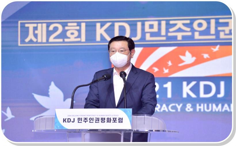 À̿뼷 ½ÃÀåÀº 12ÀÏ ¹ÎÁÖÀÎ±ÇÆòÈÆ÷·³ Ãà»ç¸¦ ÅëÇØ ¡°¡®KDJ ¹ÎÁÖÀÎ±ÇÆòÈÆ÷·³¡¯Àº ´ëÅë·É´Ô²²¼ »ýÀü¿¡ °Á¶Çϼ̴ø ¹ÎÁÖ, ÀαÇ, ÆòÈÀÇ °¡Ä¡¸¦ µÇ»õ±â¸ç À̸¦ °è½Â¹ßÀü ½ÃÄѳª°¡±â À§ÇÑ ½Çõ¹æ¾ÈÀ» ¸ð»öÇÏ´Â ÀåÀÌ´Ù¡±¸é¼ ¡°´ëÅë·É²²¼ ±×Åä·Ï ¹Ù¶ú´ø ¡®ÀÚÀ¯°¡ µé²Éó·³ ¸¸¹ßÇϰí, Á¤Àǰ¡ °¹°Ã³·³ Ǫ¸£¸ç, ÅëÀÏÀÇ Èñ¸ÁÀÌ ¹«Áö°³Ã³·³ ÇǾî¿À¸£´Â ³ª¶ó¡¯¸¦ ±¤ÁÖ¿¡¼ºÎÅÍ ½ÇÇöÇØ ³ª°¡°Ú´Ù¡±°í ¹àÇû´Ù.