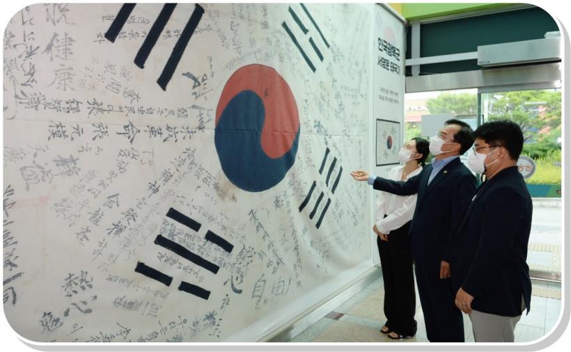 [°ø°£´º½º = ±è´ë¿µ±âÀÚ] ±¤ÁÖ ±¤»ê±¸(±¸Ã»Àå ±è»ïÈ£)°¡ Á¦76Áֳ⠱¤º¹ÀýÀ» ¸Â¾Æ ±¸Ã»»ç 1Ãþ Çö°ü¿¡ ¡®Çѱ¹±¤º¹±º ¼¸í¹® űر⡯¸¦ Àü½ÃÇÑ´Ù.