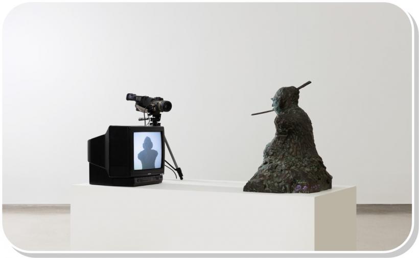 Àü½ÃÀÛ °¡¿îµ¥ ¹é³²ÁØÀÇ ¡®TVºÎ󡯴 ºÒ»ó°ú Ä·ÄÚ´õ, TV ¸ð´ÏÅÍ·Î ±¸¼ºÇÑ ¼³Ä¡ÀÛǰÀÌ´Ù. ½ÇÀçÇÏ´Â ºÒ»óÀÌ È¸é ¼Ó ÀÚ½ÅÀÇ ¸ð½ÀÀ» º¸°í, ȸéÀ» º¸´Â ¸ð½ÀÀÌ ´Ù½Ã Ä«¸Þ¶ó¿¡ ÀÇÇØ TV·Î Àü´ÞµÇ´Â °úÁ¤À» ÅëÇØ ½ÇÀç¿Í °¡»óÀÇ ¿µ¿ª¿¡ ´ëÇÑ ¼ºÂûÀ» º¸¿©ÁØ´Ù.