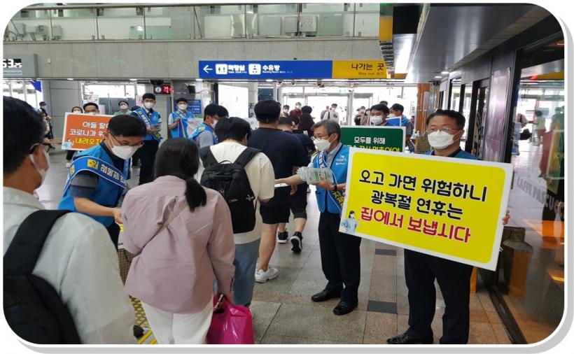 À̵éÀº Å͹̳ΰú ¿ª ÀÌ¿ëÀÚ¸¦ ´ë»óÀ¸·Î ±¤º¹Àý ¿¬ÈÞ À̵¿ ÀÚÁ¦ ¹× ¸¶½ºÅ© Âø¿ë µîÀ» È£¼ÒÇϰí, ¹æ¿ªÈ«º¸¹°°ú ¸¶½ºÅ© µîÀ» ¹èºÎÇß´Ù. ¶ÇÇÑ À̳¯ ¸ñÆ÷¿ª¿¡ ¼³Ä¡ÇÑ ¼±º°Áø·á¼Ò ¿î¿µ »óȲµµ »ìÆñ´Ù.