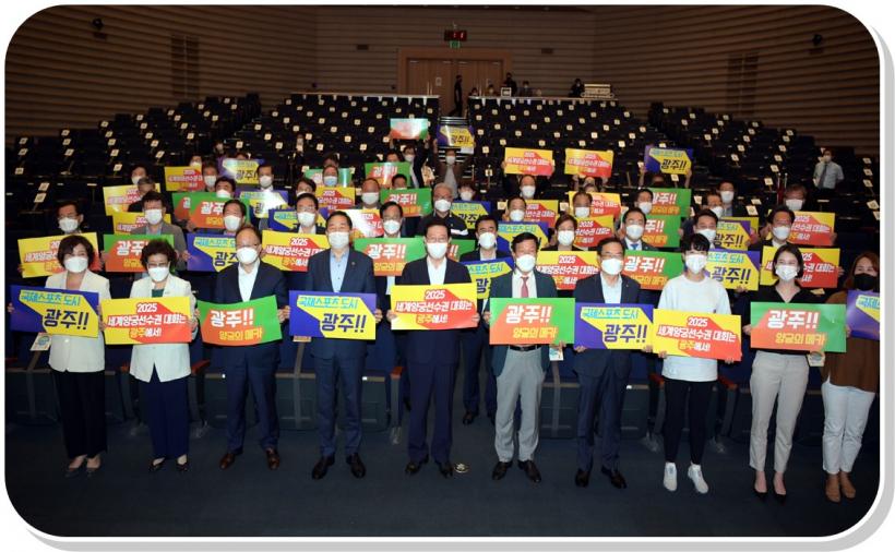 À¯Ä¡À§¿øÈ¸´Â ±¤ÁÖ°¡ 2015³â¿¡ ÇϰèÀ¯´Ï¹ö½Ã¾Æµå ´ëȸ, 2019³â¿¡´Â ¼¼°è¼ö¿µ¼±¼ö±Ç´ëȸ µî ´ë±Ô¸ð ±¹Á¦´ëȸ ¼º°ø°³ÃÖÀÇ °æÇèÀ» Åä´ë·Î 2025³â ¼¼°è¾ç±Ã¼±¼ö±Ç´ëȸ¸¦ ¹Ýµå½Ã À¯Ä¡Çϰڴٴ ÀÇÁö¸¦ ´ÙÁ³´Ù.