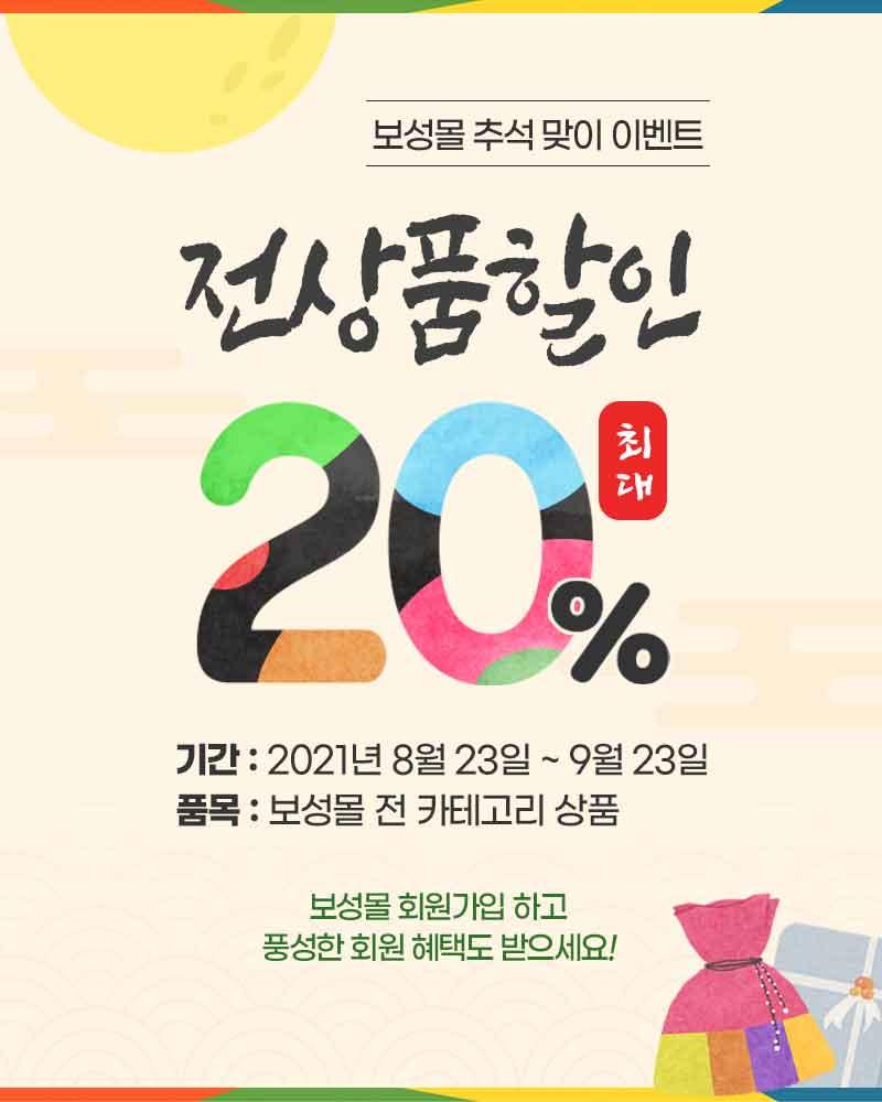 [°ø°£´º½º = ±è´ë¿µ±âÀÚ] º¸¼º±ºÀº ¹ÎÁ· ´ë¸íÀýÀÎ Ãß¼®À» ¾ÕµÎ°í 8¿ù 23ÀϺÎÅÍ 9¿ù 23ÀϱîÁö(32Àϰ£) ¿Â¶óÀÎ Á÷°Å·¡ ÀåÅÍ¡®º¸¼º¸ô(http://mall.boseong.go.kr)¡¯Æ¯º° ÇÒÀÎÇà»ç¸¦ ÁøÇàÇÑ´Ù.