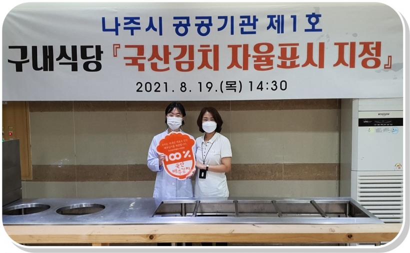 [°ø°£´º½º = ±è¼ö±Ù±âÀÚ] Àü¶ó³²µµ ³ªÁÖ½Ã(½ÃÀå °ÀαÔ)´Â û»ç ±¸³»½Ä´çÀ» ¡®100%±¹»ê ±èÄ¡¡¯¸¦ Ãë±ÞÇÏ´Â ±¹»ê±èÄ¡ ÀÚÀ²Ç¥½ÃÁ¦ ÀÎÁõ ¾÷¼Ò·Î ÁöÁ¤Çß´Ù°í 24ÀÏ ¹àÇû´Ù.
