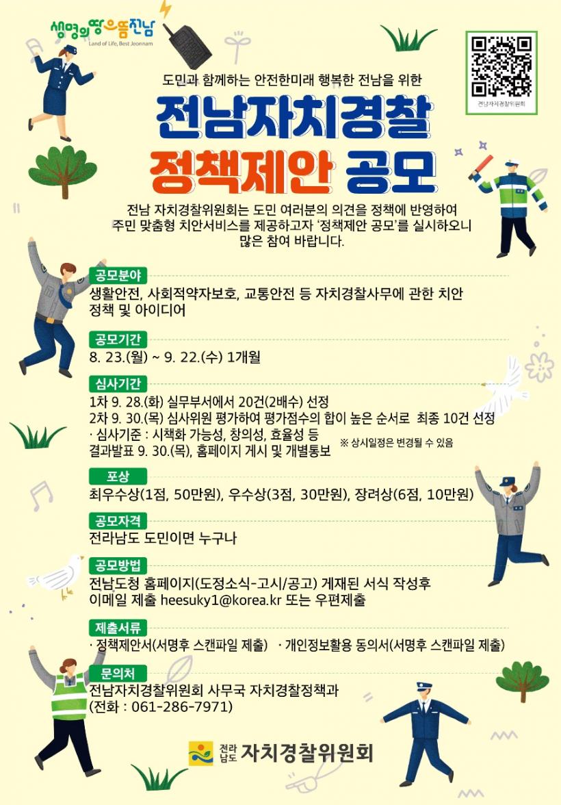 [°ø°£´º½º = ±è¼ö±Ù±âÀÚ] Àü³²ÀÚÄ¡°æÂûÀ§¿øÈ¸°¡ µµ¹Î ÀǰßÀ» ¹Ý¿µÇÑ Áö¿ª ¸ÂÃãÇü Ä¡¾È¼ºñ½º¸¦ À§ÇØ ¿À´Â 9¿ù 22ÀϱîÁö 1°³¿ù°£ ¡®Àü³²ÀÚÄ¡°æÂû Á¤Ã¥ Á¦¾È¡¯À» °ø¸ðÇÑ´Ù.