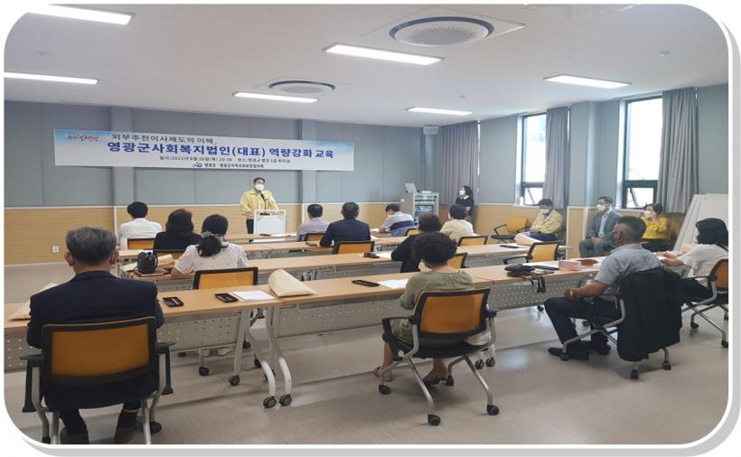 À̹ø ±³À°Àº ¹Ú¹Î¼ö °»ç(Çѱ¹Áö¿ª»çȸº¸ÀåÇùÀÇü ¼ö¼®ºÎȸÀå)¸¦ ÃʺùÇÏ¿© Áö¿ª ³» »çȸº¹Áö¹ýÀÎÀÇ Åõ¸í¼º°ú Ã¥ÀÓ¼º Çâ»ó, È¿À²ÀûÀÎ ¿î¿µ °È ¹× ¿ÜºÎÃßõ ÀÌ»çÁ¦µµÀÇ ÀÌÇØ¿Í ¿ªÇÒ µîÀ» Áß½ÉÀ¸·Î ¹ýÀÎ ÀÌ»çȸ ¿î¿µ°ú °ü·ÃµÈ ½ÇÁúÀûÀÎ »ç·Ê·Î ÁøÇàµÇ¾ú´Ù.