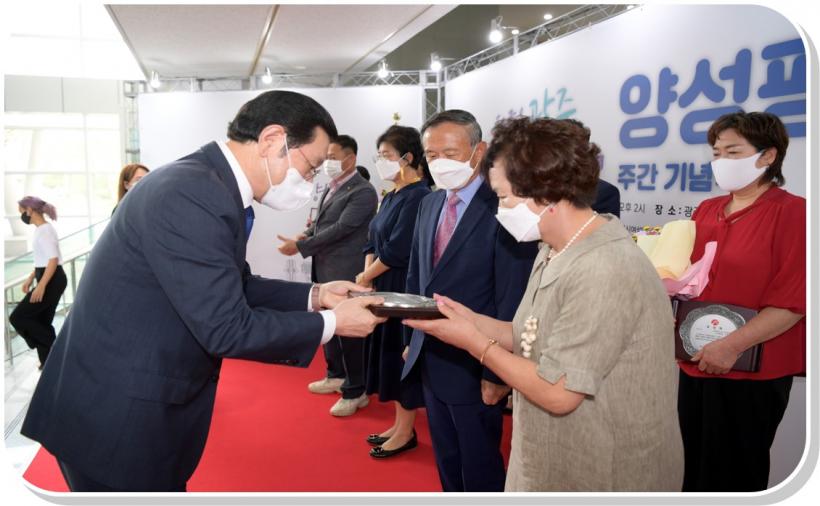 | À̿뼷 ±¤ÁÖ±¤¿ª½ÃÀåÀÌ 1ÀÏ ¿ÀÈÄ ½Ãû ½Ã¹ÎȦ¿¡¼ ¿¸° 2021 ¾ç¼ºÆòµîÁÖ°£ ±â³äÇà»ç¿¡ Âü¼®ÇØ À¯°øÀÚ¿¡ ´ëÇØ ½Ã»óÀ» Çϰí ÀÖ´Ù. |
