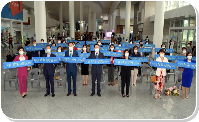 ¡®´õ ÁÁÀº ±¤ÁÖ, ¼ºÆòµîÀ» ÇâÇØ¡¯ ¶ó´Â ½½·Î°ÇÀ¸·Î ÁøÇàµÇ´Â À̹ø ±â³äÇà»ç¿¡´Â À̿뼷 ½ÃÀå, ±è¿ëÁý ½ÃÀÇȸ ÀÇÀå, Á¤¼ø¾Ö ½ÃÀÇȸ ºÎÀÇÀå, ½Å¼öÁ¤ ½ÃÀÇȸ ȯ°æº¹ÁöÀ§¿øÀå, ±è¶õÈñ ±¤ÁÖÀü³²¿©¼º´Üü¿¬ÇÕ ´ëÇ¥, °û¼±Èñ ±¤ÁÖ¿©¼º´ÜüÇùÀÇȸÀå, ±è¼±¿Á ±¤ÁÖYWCA ȸÀå µîÀÌ Âü¼®Çß´Ù.