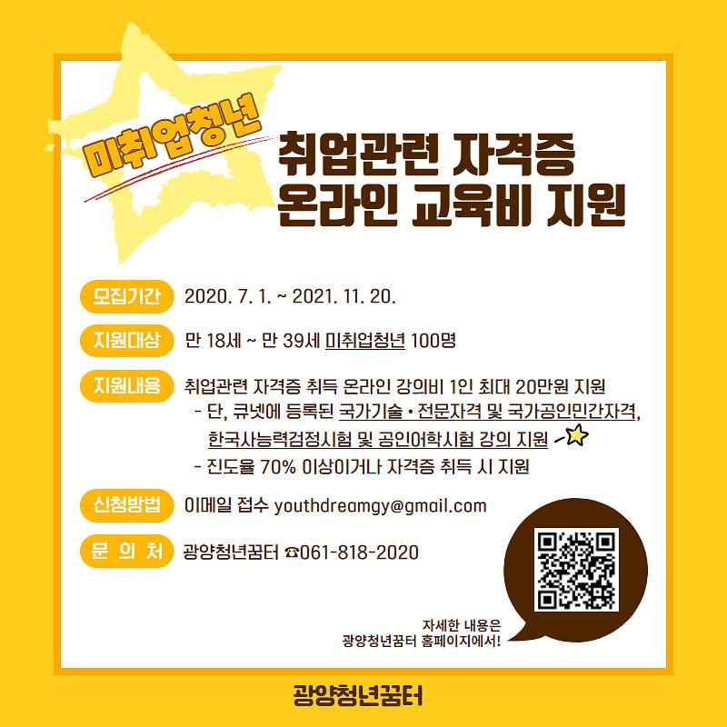 ±¤¾ç½Ã¿Í ±¤¾ç¸¸±ÇÀÏÀÚ¸®»ç¾÷´ÜÀÌ ÃßÁøÇÏ´Â ¿Â¶óÀÎ ±³À°ºñ Áö¿ø»ç¾÷Àº ¿ÃÇØ 11¿ù 20ÀϱîÁö Áö¿ø ´ë»ó °ÀǸ¦ ¼ö°ÇÑ ±¤¾ç½Ã ¹ÌÃë¾÷ û³â¿¡°Ô ÃÖ´ë 20¸¸ ¿ø±îÁö Áö¿øÇÏ´Â »ç¾÷ÀÌ´Ù.